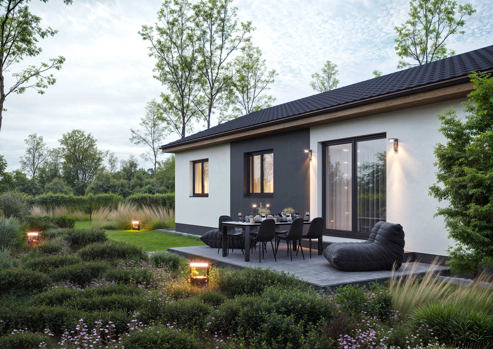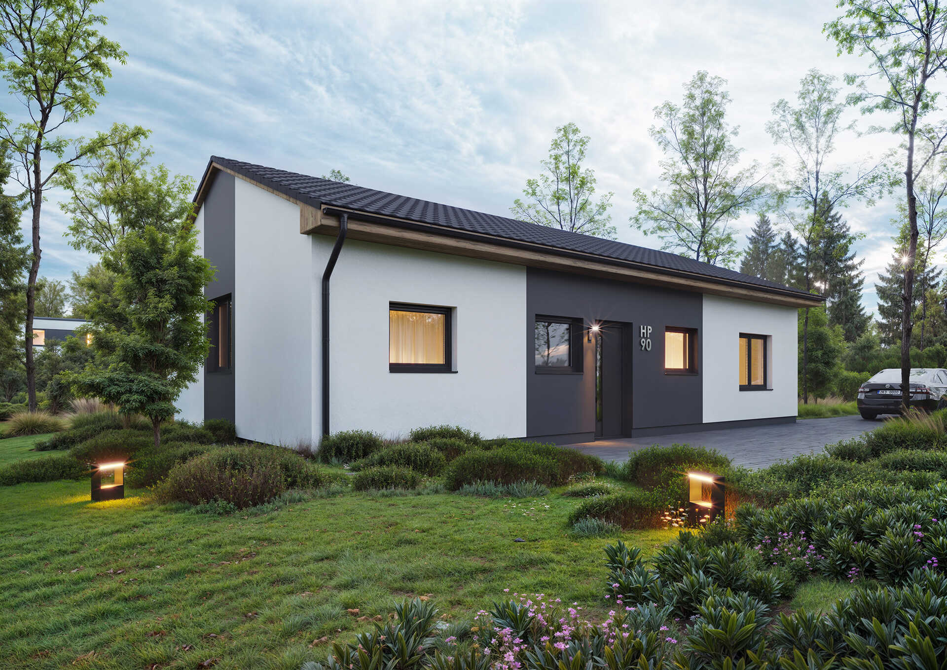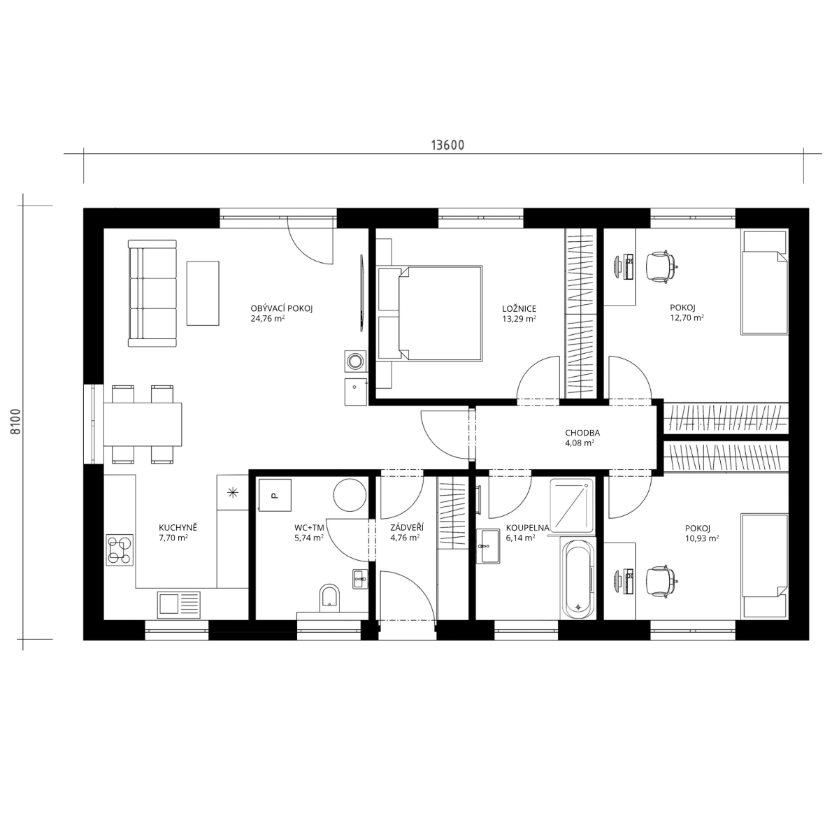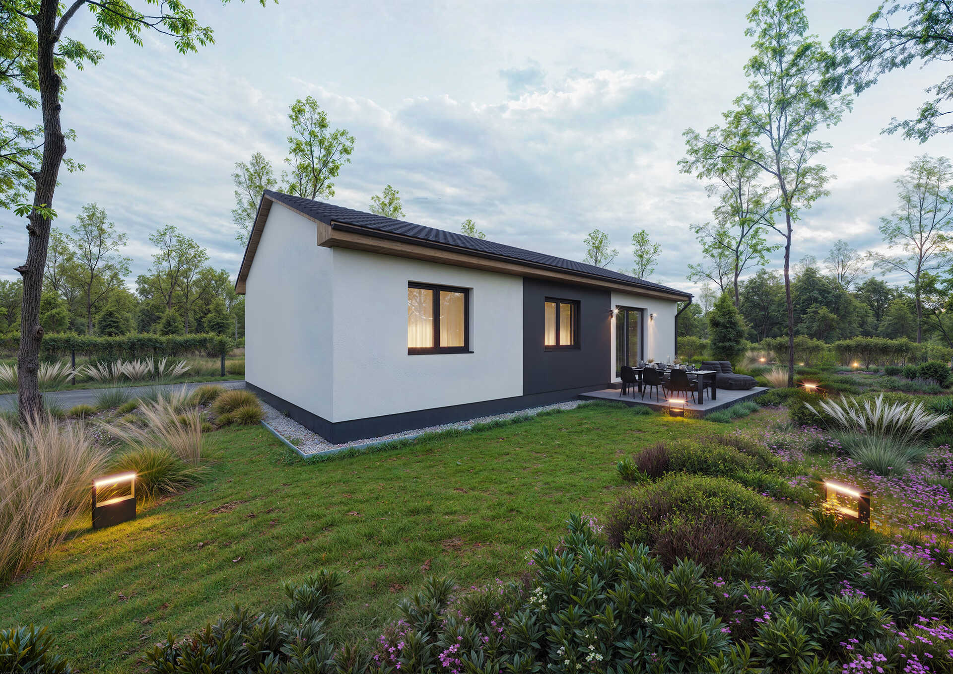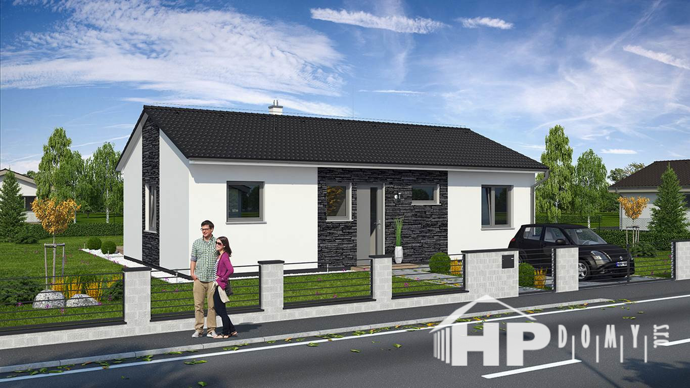 Přízemní dům pro 4člennou rodinu, vhodný i na velmi úzké pozemky.