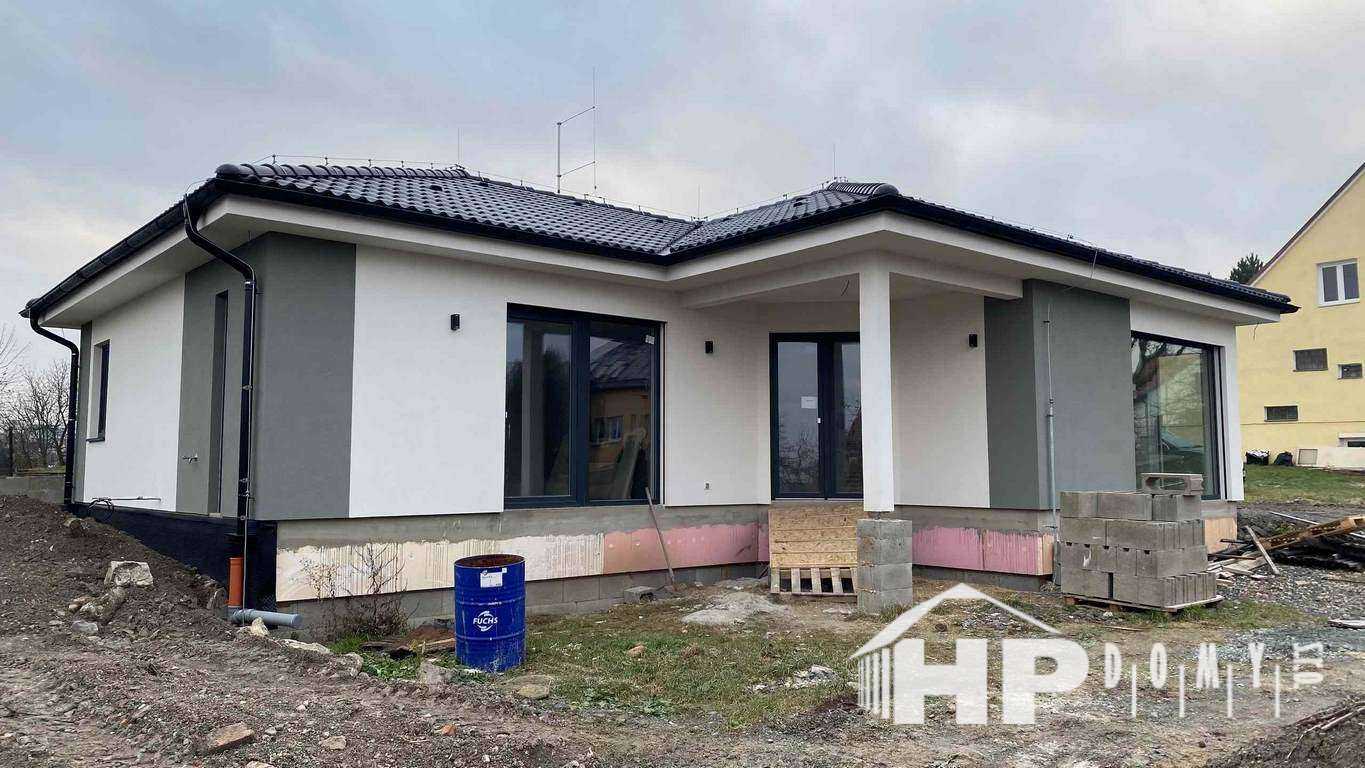Individuální projekt dřevostavby bungalovu 4+kk s užitnou plochou 109 m2 v obci Odolena Voda.